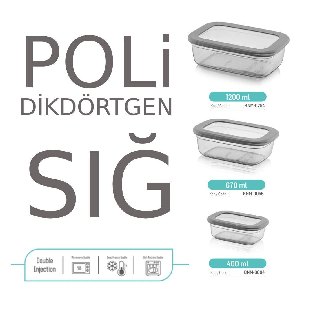 خانه محصولات پلاستیکی و غیرشیشه ای بانکه پلاستیکی بانکه درب سیلیکونی فولی لایف – مستطیلی 400 میلی لیتری رنگ دودی کد Poli 0094
