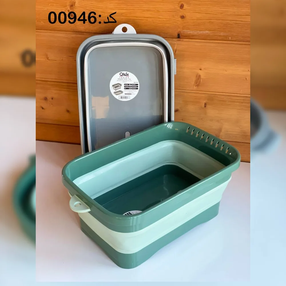 لگن تاشو آبرودار مستطیلی کیولوکس 7 لیتری رنگ سبز کد 009463